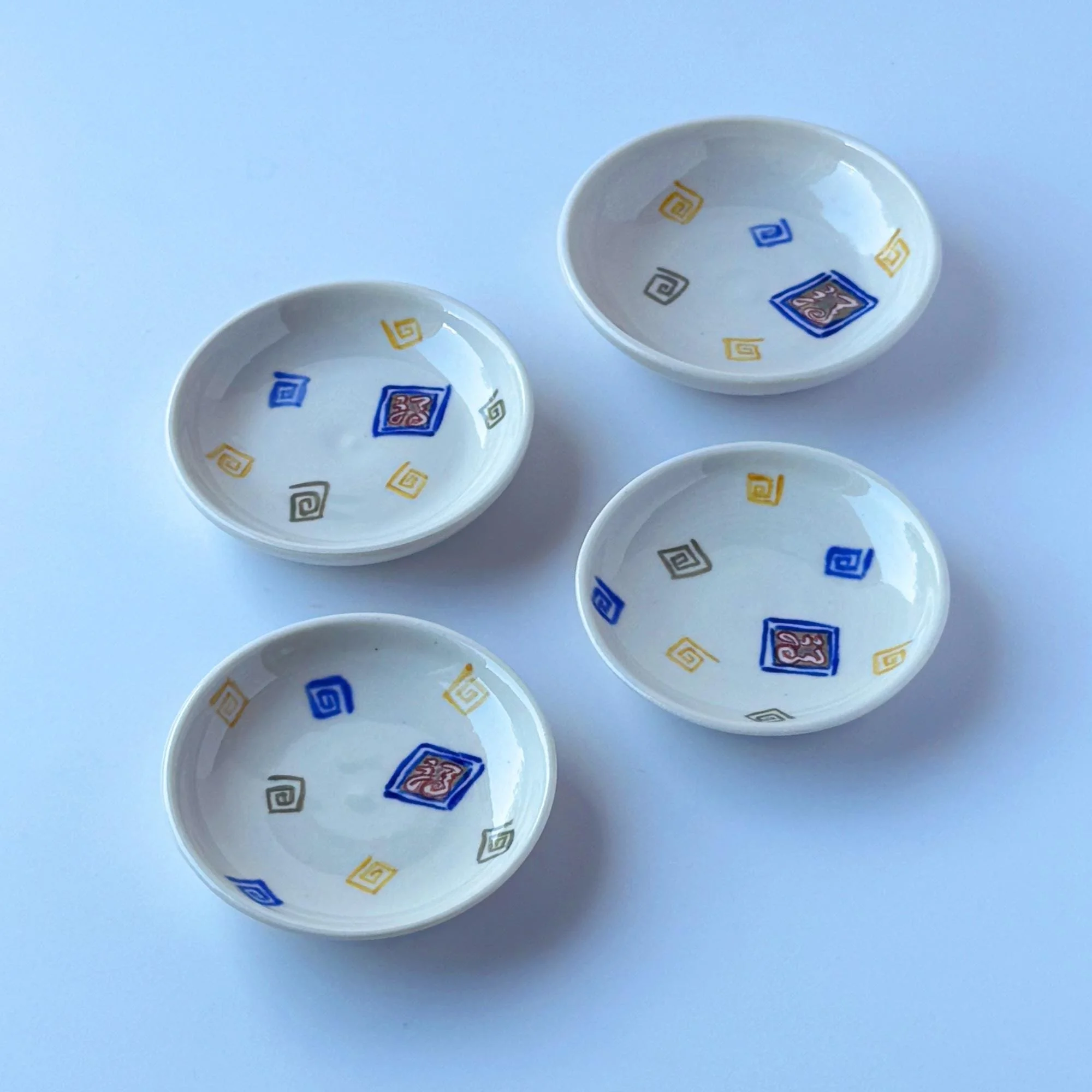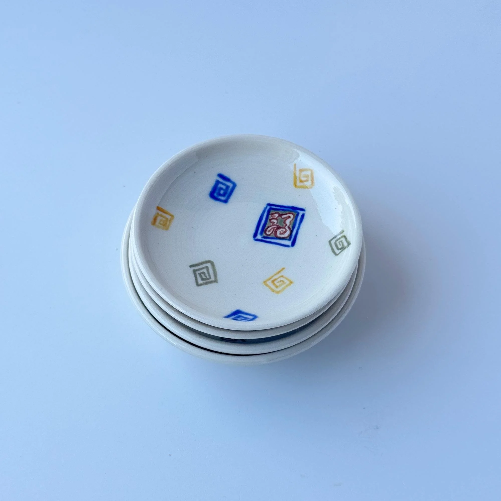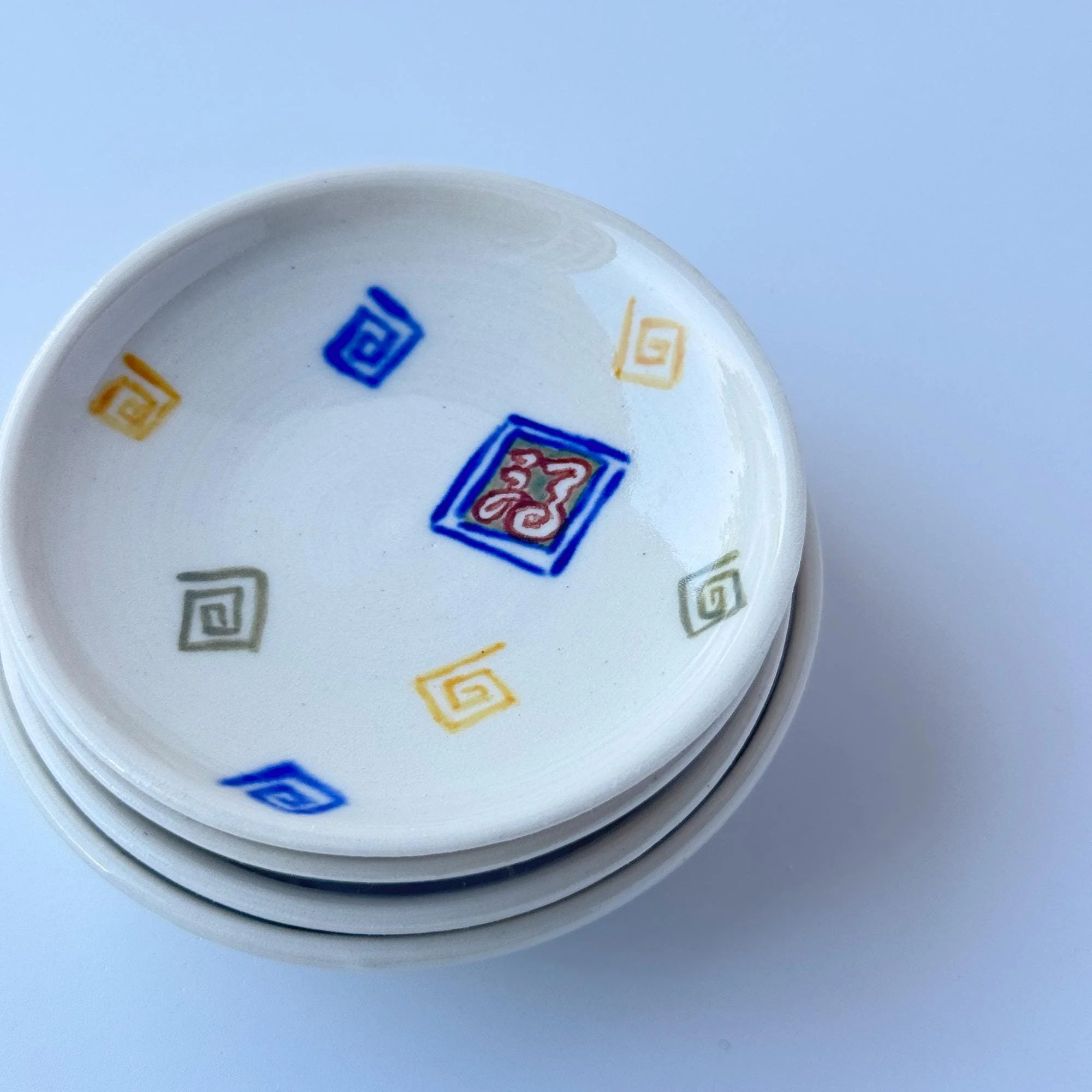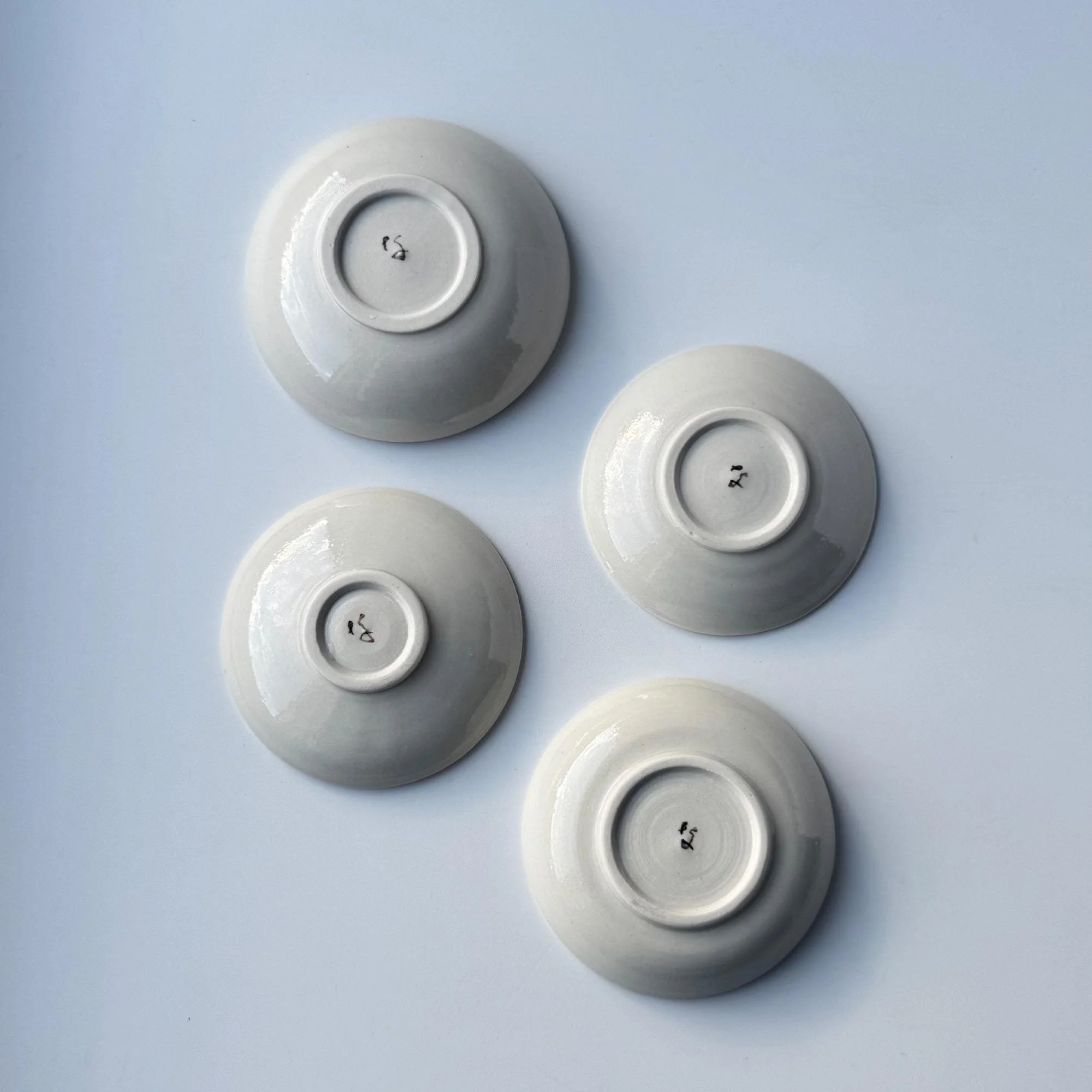 Hand-thrown, porcelain, hand-painted with underglazes on the foot, glazed inside and out.